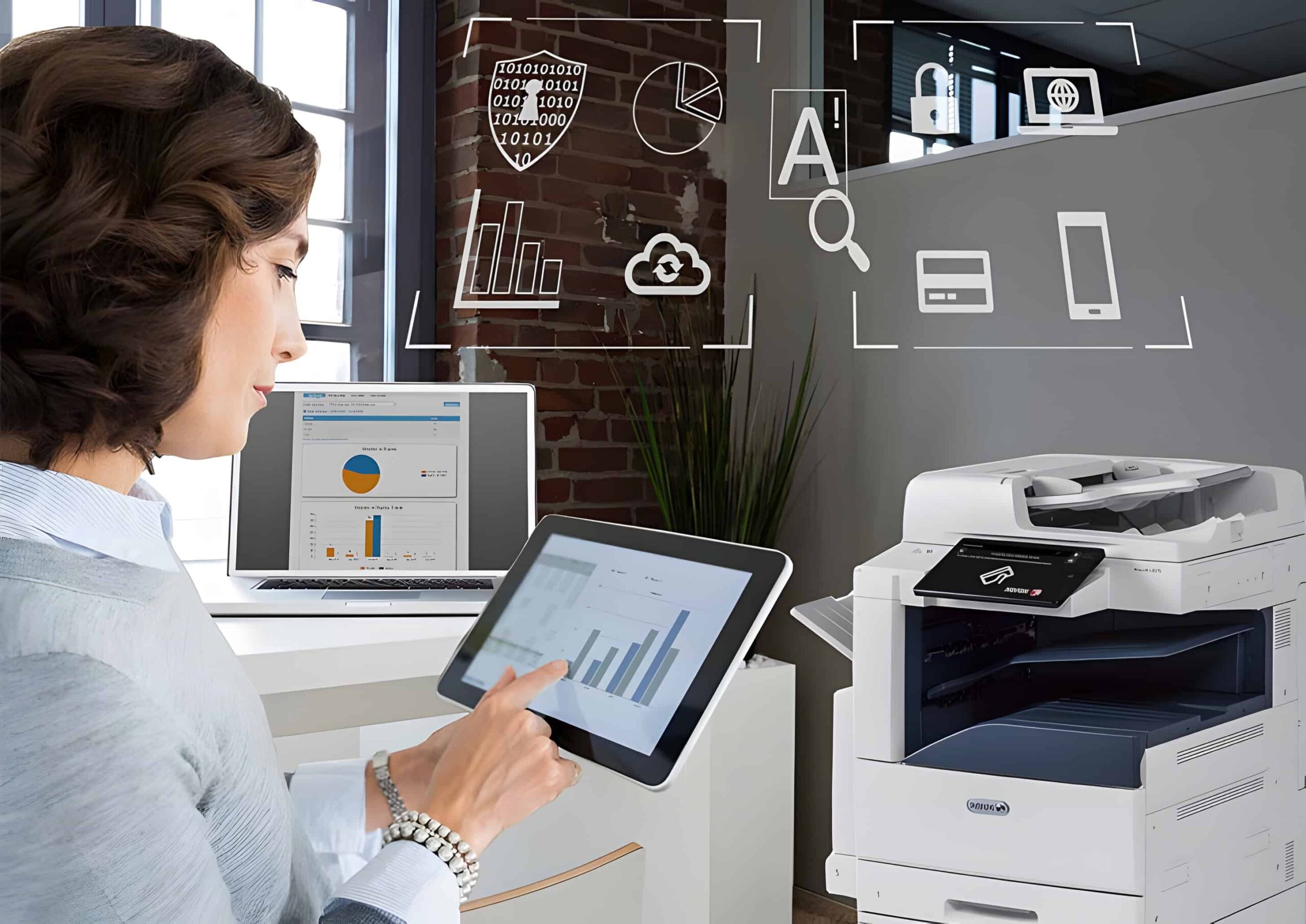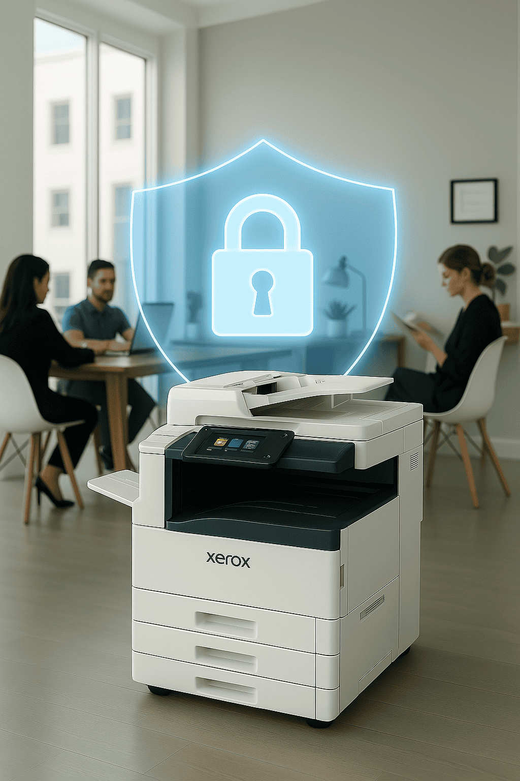 Xerox tilbyder avancerede sikkerhedsfunktioner i både drift og dvale, herunder 256-bit kryptering, FIPS 140-2, TLS 1.3, print autorisering via pinkoder og kort.