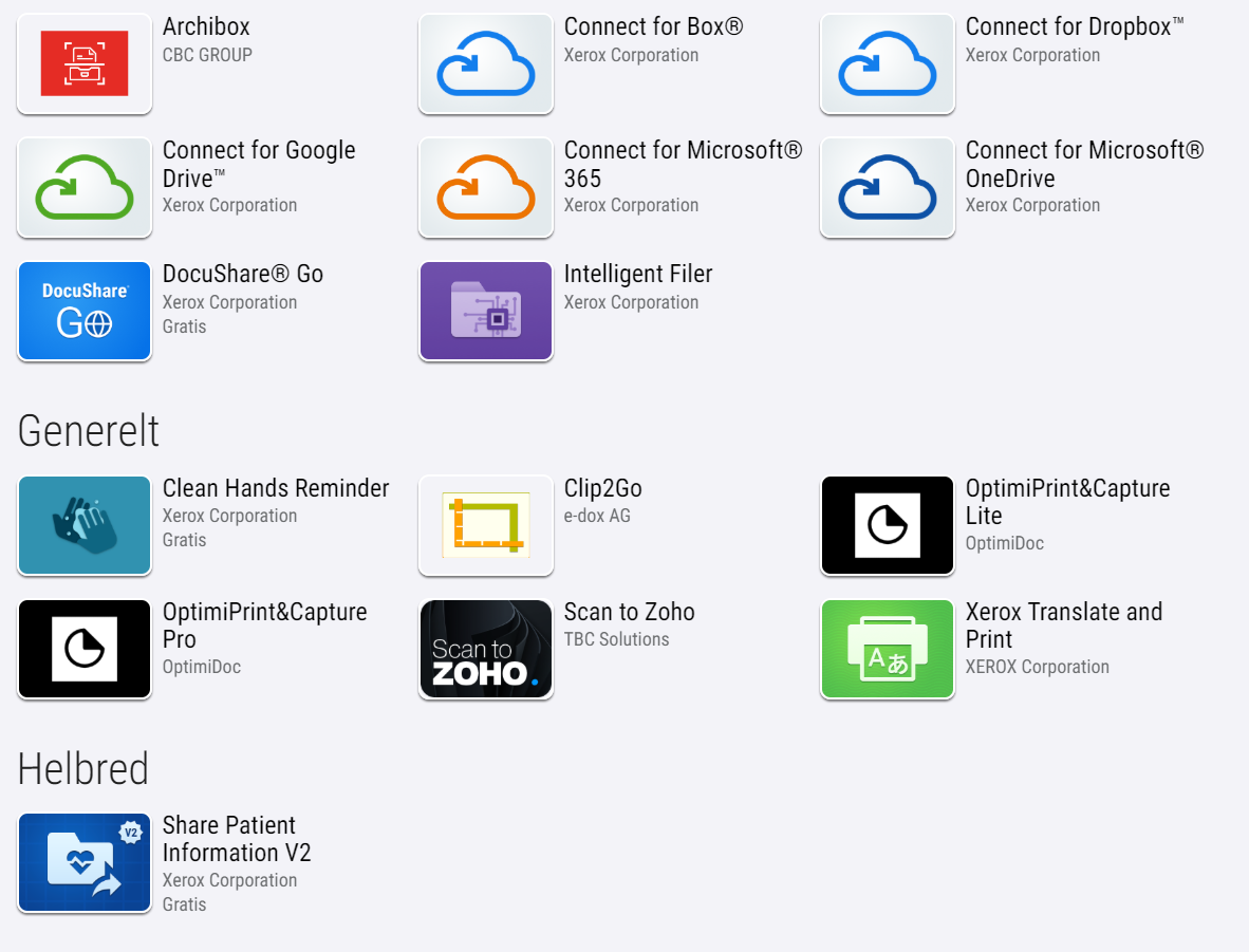 Xerox App Gallery tilbyder et bredt udvalg af apps, der giver brugerne mulighed forat tilpasse deres printere og workflows til specifikke behov.